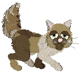 The lone kitty, her adoptive daughter! She's been personality edited and her ears have also been tweaked a bit. Requires Angora's desat palette. Her tail could use more paintballs to fill things out, so it kinda flickers at times, though honestly I think it's kinda pretty.
